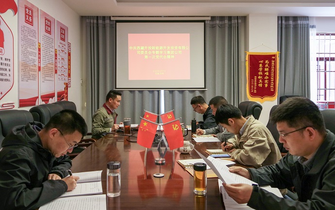 會(huì)議要求,一要深刻認(rèn)識(shí)集團(tuán)公司第一次黨代會(huì)的重大意義和豐富內(nèi)涵,把學(xué)習(xí)好、宣傳好、貫徹好黨代會(huì)精神作為當(dāng)前一段時(shí)間最大的政治任務(wù),迅速在新能源公司上下掀起學(xué)習(xí)黨代會(huì)精神的熱潮。通過(guò)黨委理論學(xué)習(xí)中心組集中學(xué)習(xí)、支部會(huì)議、研討會(huì)等多種方式,堅(jiān)持集中學(xué)習(xí)和個(gè)人自學(xué),通讀報(bào)告與專題研討相結(jié)合,確保學(xué)習(xí)宣傳貫徹取得實(shí)實(shí)在在的效果。二要將學(xué)習(xí)集團(tuán)公司第一次黨代會(huì)精神與改進(jìn)作風(fēng)狠抓落實(shí)工作結(jié)合起來(lái),與按期推動(dòng)吉塘一期20萬(wàn)千瓦光伏項(xiàng)目結(jié)合起來(lái),并以此為主線,所有工作都要往這條主線聚焦。從黨委到各黨支部、各部門(mén)逐級(jí)有序深入組織學(xué)習(xí)宣傳貫徹黨代會(huì)精神活動(dòng),確保學(xué)習(xí)貫徹黨代會(huì)精神實(shí)現(xiàn)全覆蓋,確保學(xué)習(xí)一個(gè)不少,人人參與。三要把新能源公司各項(xiàng)工作融于集團(tuán)公司發(fā)展戰(zhàn)略全局考慮,聚焦“四件大事”“四個(gè)確保”,聚力“四個(gè)創(chuàng)建”“四個(gè)走在前列”,切實(shí)把集團(tuán)公司第一次黨代會(huì)精神落實(shí)到新能源公司主責(zé)主業(yè)和今年各項(xiàng)工作目標(biāo)及明年工作超前謀劃之中,推動(dòng)學(xué)習(xí)貫徹往實(shí)里走、往深里走,為助力集團(tuán)公司高質(zhì)量發(fā)展凝聚磅礴力量,在集團(tuán)公司“二次創(chuàng)業(yè)”中以實(shí)績(jī)展現(xiàn)新能源公司新?lián)?dāng)、新作為、新形象。