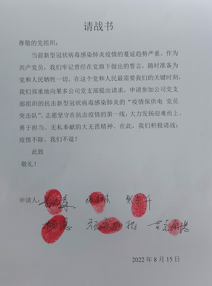 (黨員突擊隊請戰(zhàn)書 王強攝)