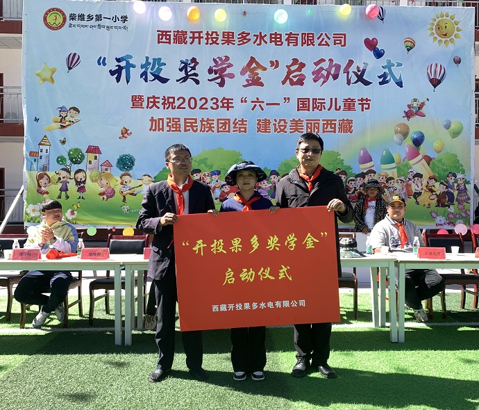 活動現(xiàn)場舉行了“開投果多獎學金”啟動儀式及凈水設備捐贈儀式。果多水電公司董事長、總經(jīng)理宋亞東表示,“開投果多獎學金”的設立,旨在獎勵品學兼優(yōu)的學生,鼓勵大家努力學習,奮發(fā)向上,努力成長為國家的棟梁之材。柴維鄉(xiāng)小學校長代表全校師生對果多水電公司融入地方經(jīng)濟社會發(fā)展、支持教育事業(yè)、積極承擔社會責任的善舉表示衷心的感謝,并希望同學們將善舉轉化為學習、前進的強大動力,努力學習,勵志成才,以優(yōu)異的成績回報社會,努力成為對社會有用的人才。