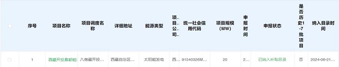 6月21日,國家電網(wǎng)公布2024年第六批列入可再生能源發(fā)電補(bǔ)貼項(xiàng)目名單,其中西藏開投八宿光伏電站發(fā)電項(xiàng)目成功納入國家光伏電價(jià)補(bǔ)貼目錄。