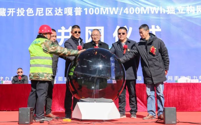 西藏開投色尼區(qū)達(dá)嘎普獨(dú)立構(gòu)網(wǎng)型儲(chǔ)能項(xiàng)目并網(wǎng)儀式現(xiàn)場(chǎng)。達(dá)娃 攝