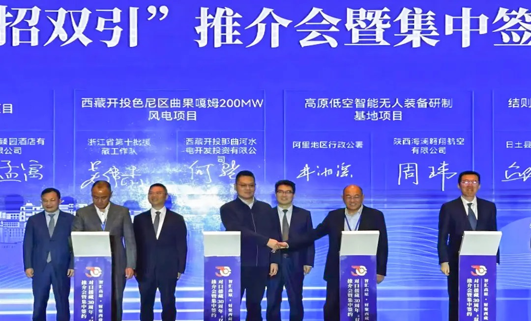 為貫徹落實自治區(qū)黨委政府決策部署,近日,區(qū)黨委組織部、自治區(qū)投資促進局在拉薩市香格里拉大酒店宴會廳舉行對口援藏30周年“雙招雙引”推介會暨集中簽約儀式?;顒佑勺灾螀^(qū)人民政府副主席張利主持,自治區(qū)黨委常委、組織部部長賴蛟致辭,那曲市政府辦、發(fā)展改革委、投資促進局及相關領導出席。本次簽約儀式涉及清潔能源、特色農牧、綠色工業(yè)、現代服務、教育、高原生態(tài)、醫(yī)藥、農牧等幾大方面,將為西藏經濟社會高質量發(fā)展注入新的活力。西藏開投集團黨委書記、董事長祁騰武,那曲河水電公司相關人員參加簽約儀式。