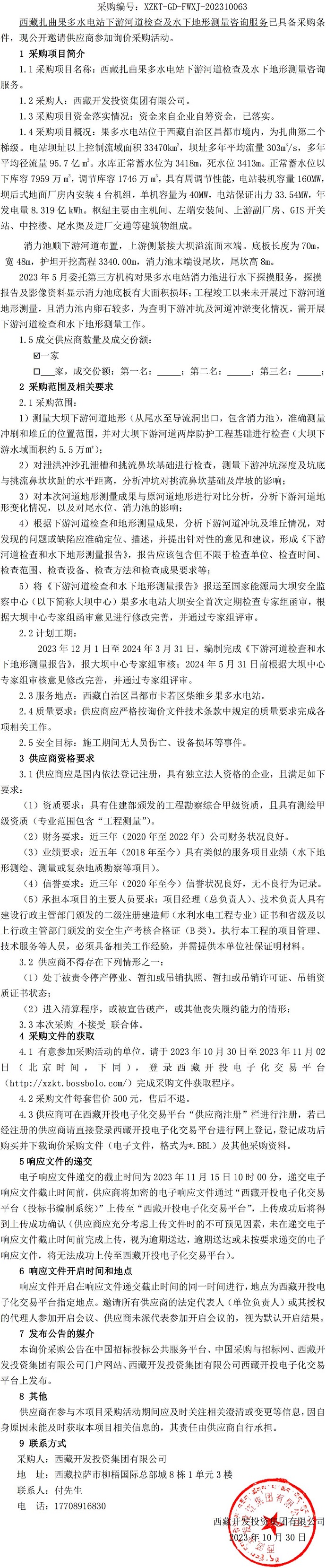 西藏扎曲果多水電站下游河道檢查及水下地形測(cè)量咨詢服務(wù)詢價(jià)采購公告