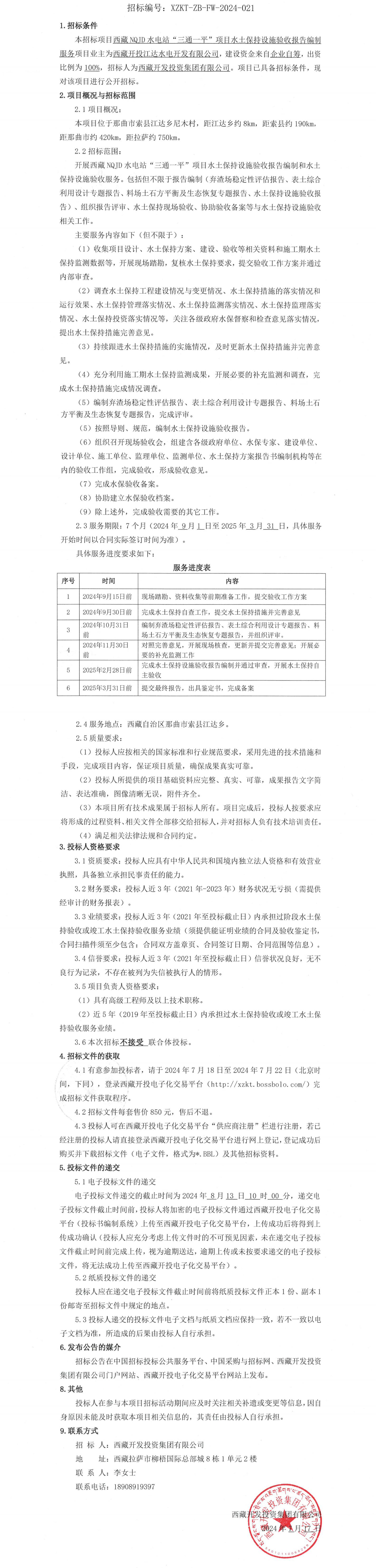 西藏NQJD水電站“三通一平”項目水土保持設(shè)施驗收報告編制服務(wù)招標公告