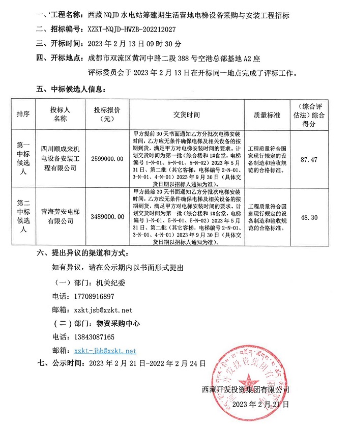 中標候選人公示
