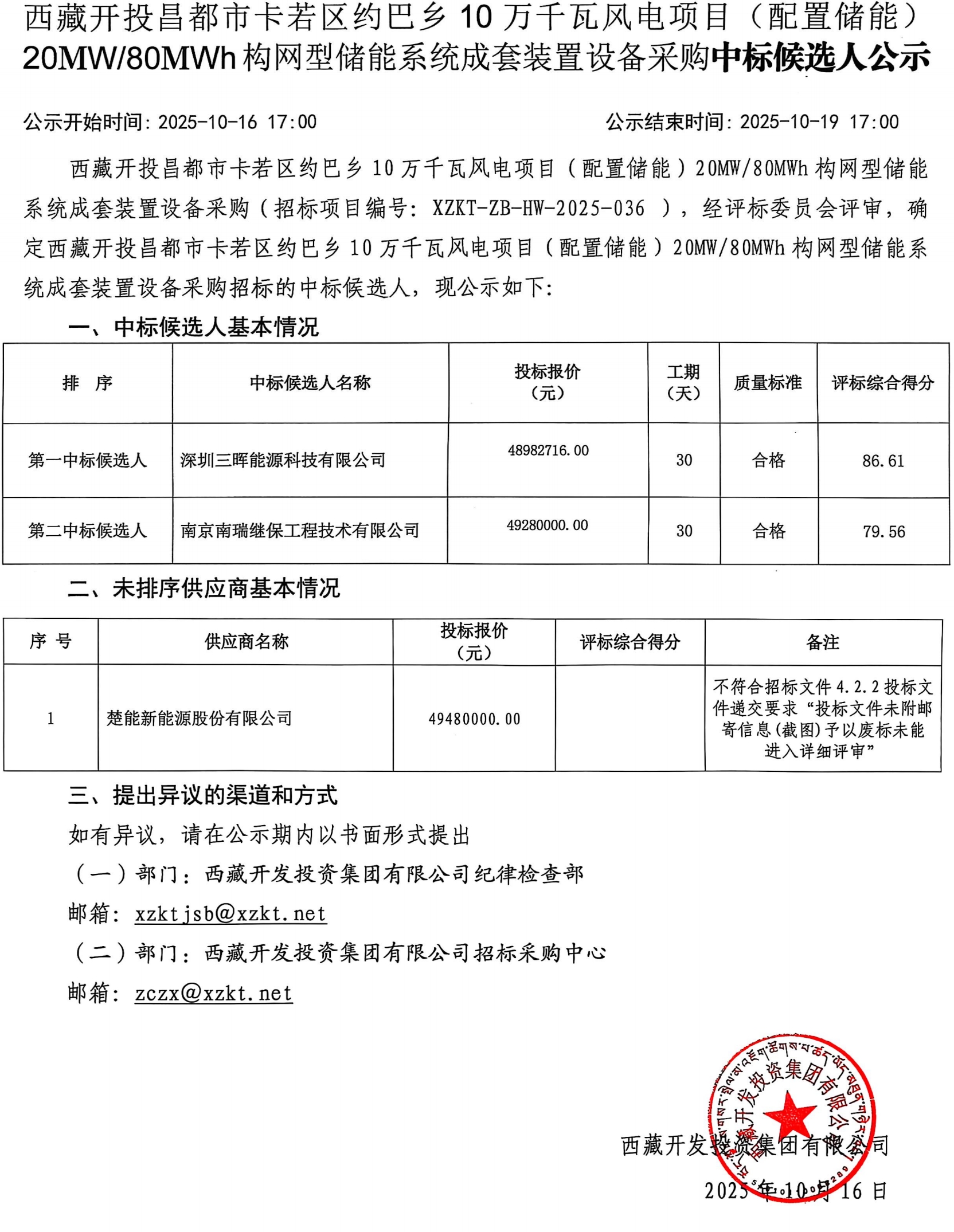 中標(biāo)候選人公示
